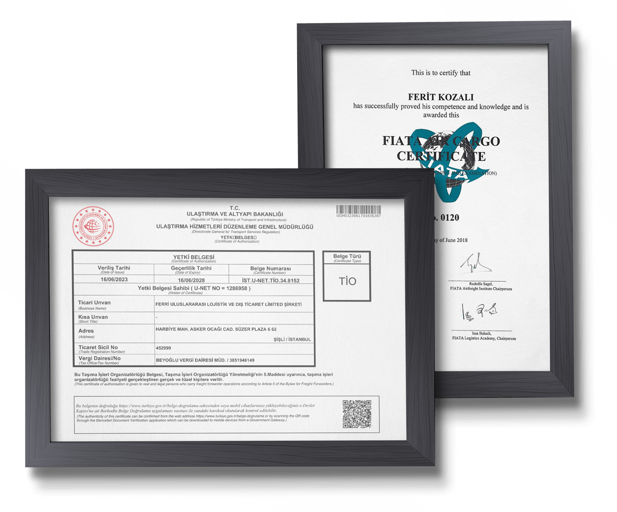 Ferri Global uluslararası taşıma işleri organizatörü olarak Ulaştırma ve Altyapı Bakanlığı tarafından tescillenmiş TİO belgesine sahip bir lojistik şirketidir.